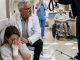 • Sur le seuil se tenaient deux hommes en costume sombre et une femme tenant un dossier épais.
