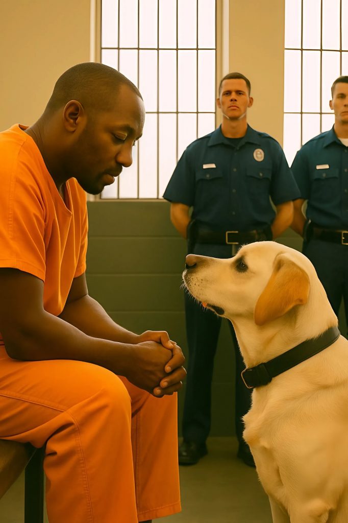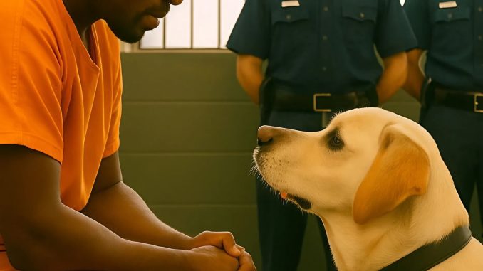 Antoine chancela quand le labrador se jeta sur lui, le renversant au sol. Les aboiements et gémissements emplirent la cour — sauvages, déchirants, incontrôlables. Le prisonnier enfouit son visage dans son pelage épais, pleurant d’une manière qui glaça même les gardiens les plus endurcis. Les larmes retenues trop longtemps coulaient enfin, violentes et irrépressibles.