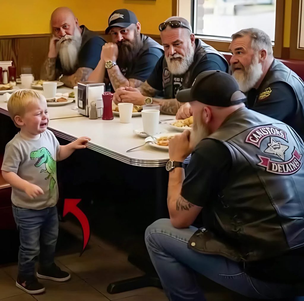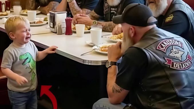 Dans un diner bruyant, saturé de l’odeur de viande grillée et du vacarme des conversations, il s’est produit un moment que personne n’oubliera jamais. À une grande table de bois, quinze motards vêtus de cuir parlaient fort, impressionnants par leur allure de vétérans de la route. Tout à coup, une petite ombre interrompit leur brouhaha. Un garçonnet en T-shirt avec des dinosaures s’approcha timidement et prononça des mots qui figèrent la salle entière.