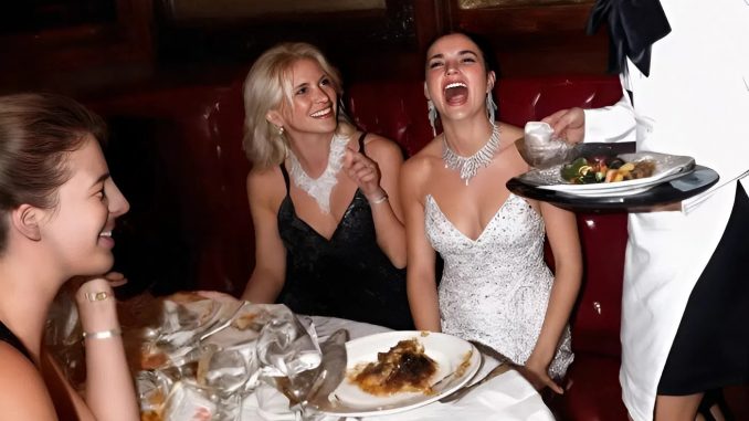 À la table voisine étaient assises trois femmes élégantes, couvertes de bijoux, vêtues de tenues de créateurs. Elles riaient fort, d’un rire qui cherchait à dominer la salle. Mais lorsque la jeune serveuse s’est approchée avec leurs plats, ce rire a changé.
