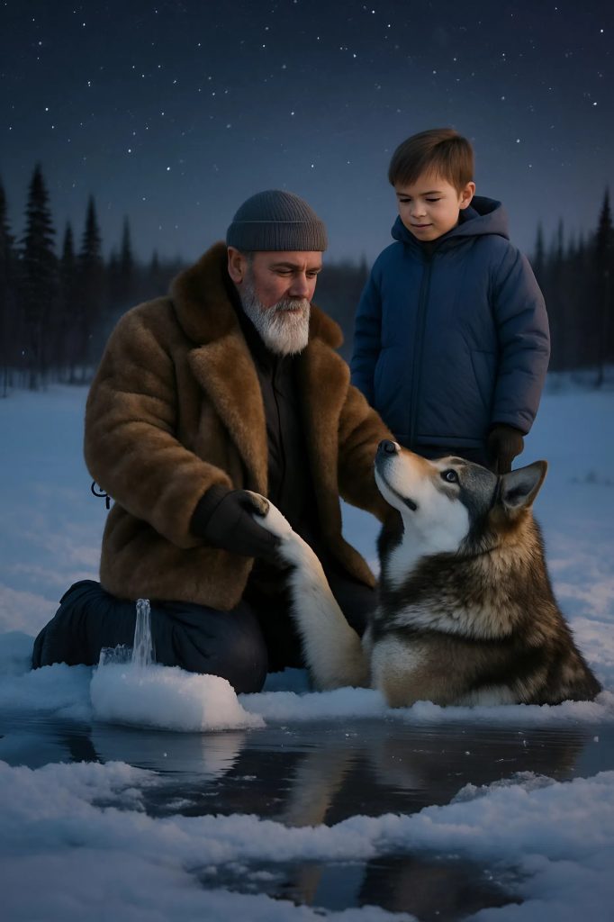 Mais Ivan frappait déjà la glace, morceau après morceau. Ses doigts saignaient, engourdis par le froid. Le loup ne bougeait pas. Il observait — avec des yeux qui semblaient comprendre.