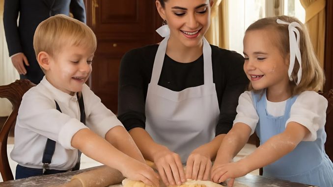 Elle tenait sa fille cadette dans les bras, tandis que son fils, à côté, montrait avec enthousiasme quelque chose sur l’écran d’une tablette.