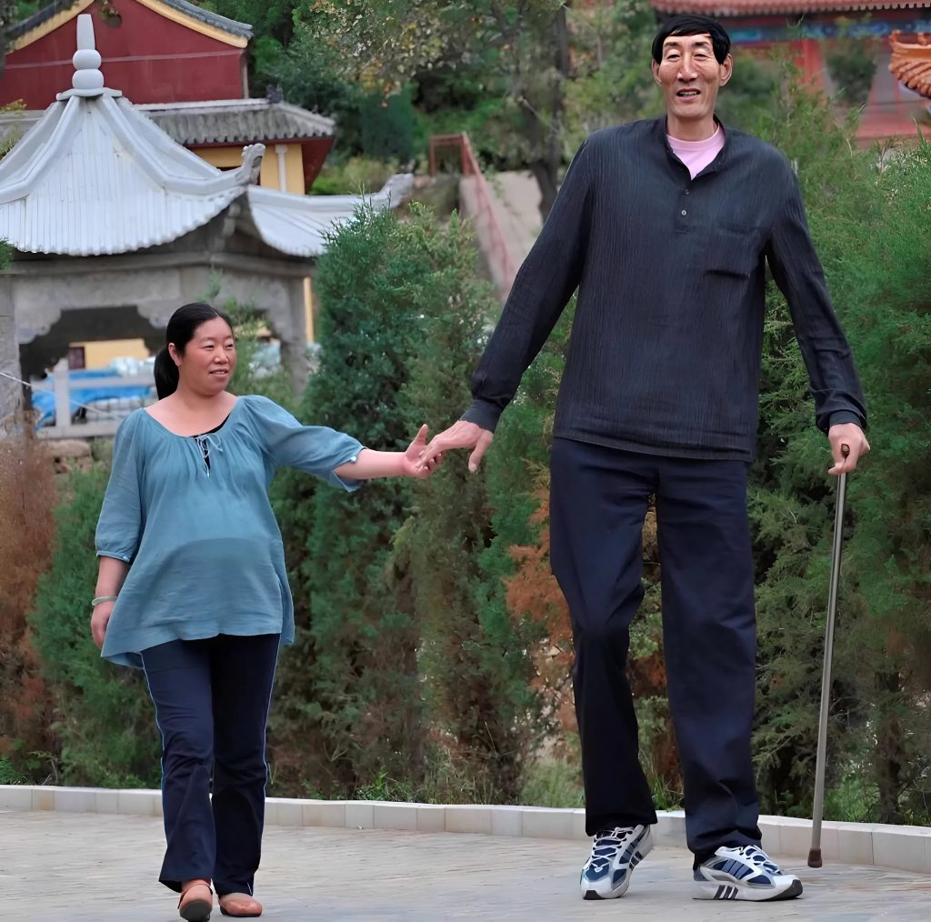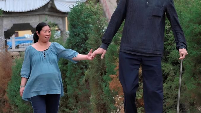 Le mariage fut modeste, célébré dans un petit village. Les invités retenaient leur souffle en les voyant danser ensemble : un homme qui pouvait toucher le plafond sans lever les bras, et une femme frêle, posant sa tête sur son torse immense. Mais dans leurs regards, il n’y avait ni gêne, ni peur — seulement un amour si fort qu’il semblait défier les lois de la nature.