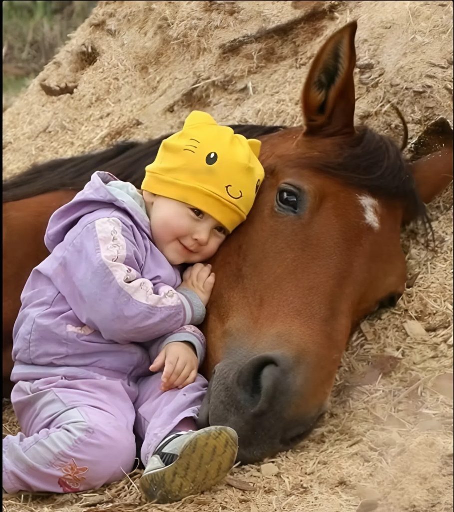 Elle passait des heures à ses côtés, caressant sa crinière douce et se blottissant contre lui. Les voir ensemble était un vrai bonheur : parfois elle s’asseyait dans le foin avec lui, parfois elle s’endormait à ses côtés comme s’il était sa meilleure amie.