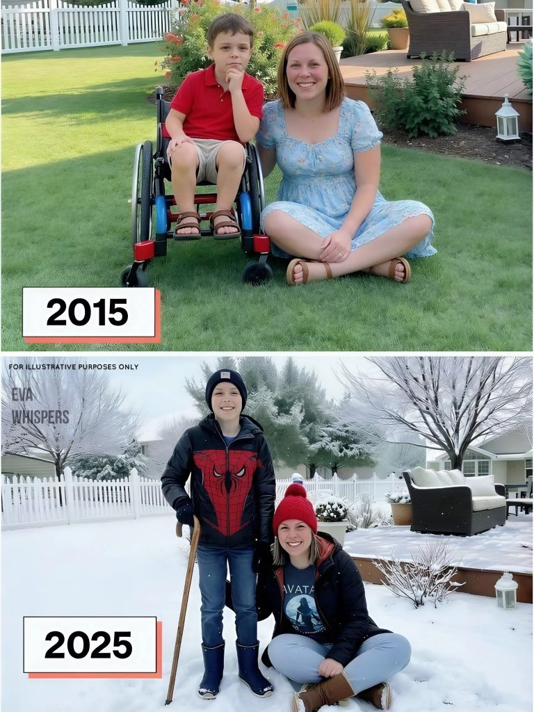 À ce moment-là, Evan sortit de sa chambre. Ce n’était plus le petit garçon fragile que j’avais recueilli autrefois. Devant moi se tenait un adolescent mince, installé dans son fauteuil roulant, avec des yeux intelligents et une maturité troublante. Il souriait encore quelques secondes plus tôt. Puis il la vit.