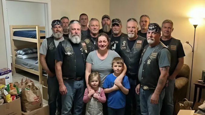 J’étais encore en pyjama, les cheveux attachés à la hâte, tenant ma petite fille Sofia dans les bras, tandis que mon fils de sept ans, Mathieu, se cachait derrière mes jambes. On entendait des pas lourds montant l’escalier, comme un grondement venant du sous-sol. Trente motos étaient garées dans la rue, et maintenant leurs pilotes grimpaient jusqu’à notre appartement.