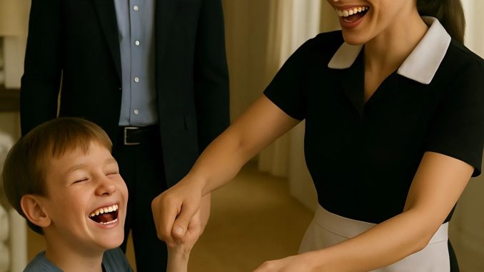 L’immense appartement parisien de Julien Morel n’était plus qu’un décor figé. De longs couloirs silencieux, des pièces froides, une atmosphère glaciale où le temps semblait suspendu. Depuis l’accident de son fils Léo, neuf ans, la vie s’était arrêtée entre ces murs. Muet, immobile, prisonnier d’un corps qui ne répondait plus, l’enfant n’émettait ni geste ni parole. Les médecins avaient baissé les bras. Et Julien, épuisé par des années de traitements et de désillusions, avait fini par croire que son fils vivait derrière une porte fermée, inaccessible, même à l’amour d’un père.