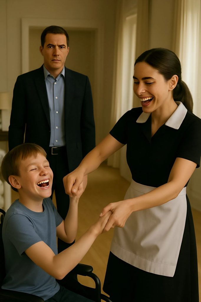 Chaque journée se ressemblait. Julien partait tôt travailler, revenait tard, fuyant le vide de son foyer. Il avait tout essayé : spécialistes réputés, cliniques prestigieuses, thérapies innovantes. Rien n’avait réveillé la moindre étincelle dans les yeux de Léo. La maison s’était transformée en tombeau. Seule Sonia, la jeune employée de maison, faisait son office, discrète et silencieuse. Mais même sa présence n’arrivait pas à briser le mur d’ombre qui séparait le père de l’enfant.