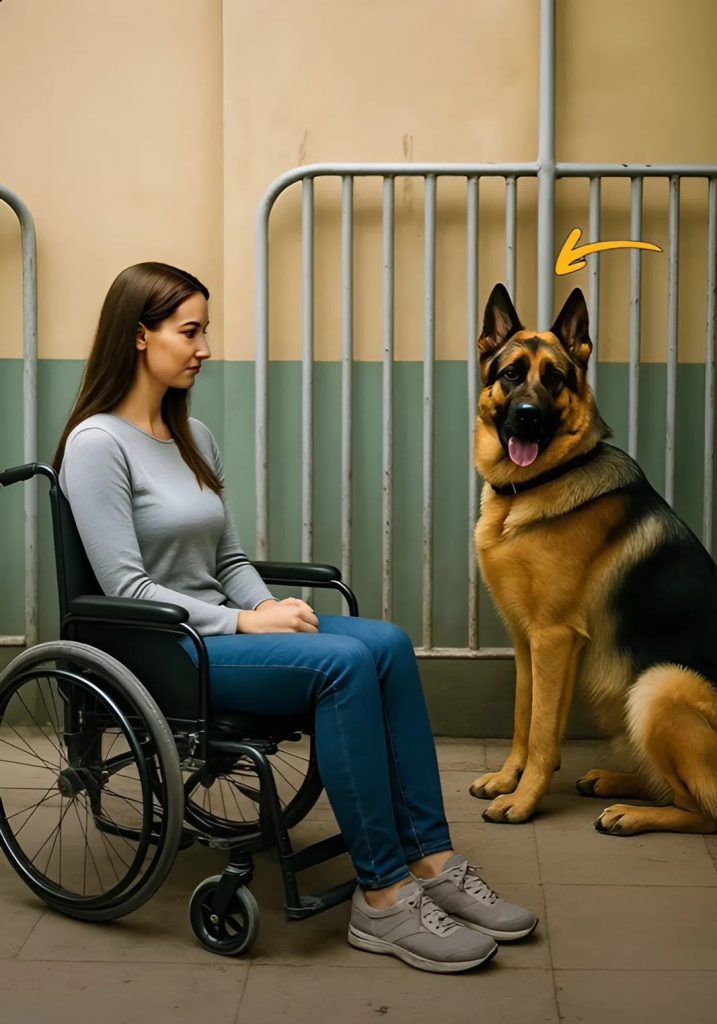 Les roues de son fauteuil grinçaient doucement sur le sol alors qu’elle avançait entre les cages. Les aboiements résonnaient, certains joyeux, d’autres désespérés. Chaque chien essayait d’attirer son attention, mais aucun ne touchait vraiment son cœur. Jusqu’à ce qu’elle la voie.