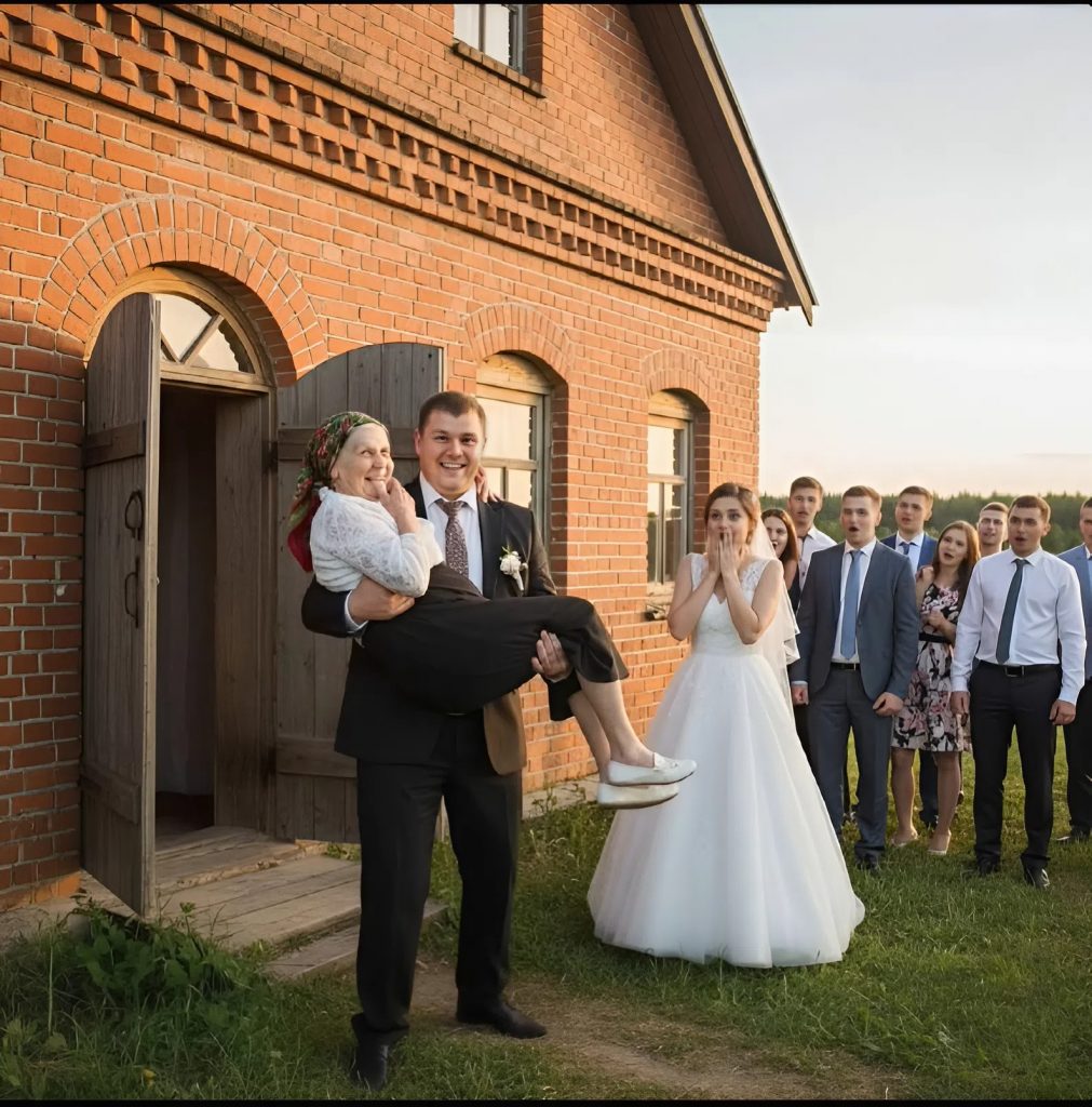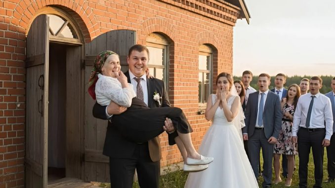 Le marié se tourna brusquement… non pas vers elle, mais vers sa mère. Celle-ci se tenait légèrement en retrait, heureuse et émue. Et soudain, devant tous les invités, il la souleva dans ses bras — exactement comme il aurait dû porter la mariée.