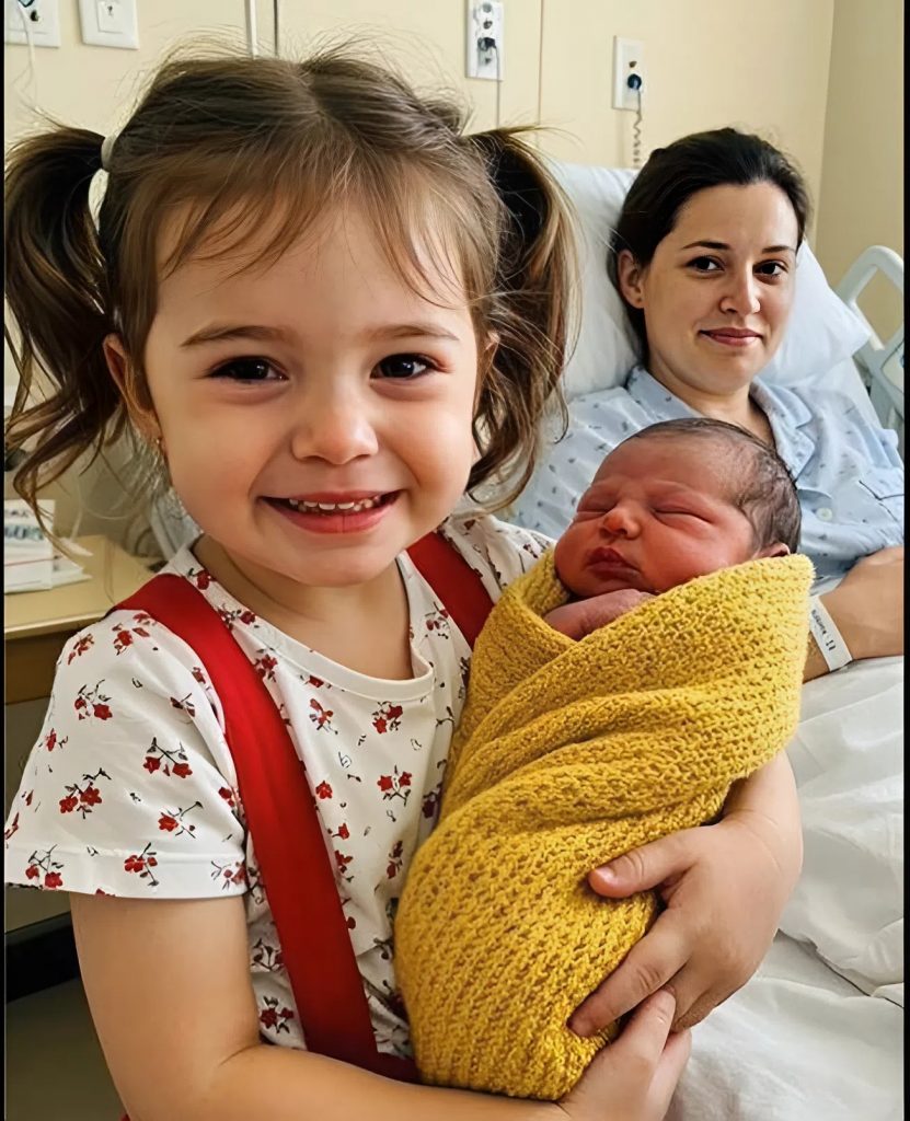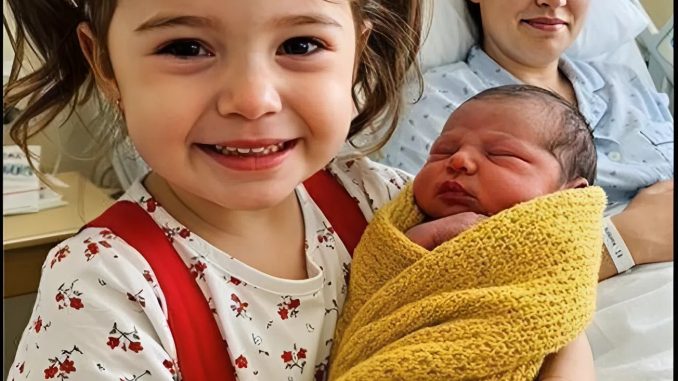 Elle était assise à côté de moi sur le lit de maternité, jambes croisées, le corps minuscule de son bébé-sœur posé délicatement sur ses genoux. Lisa, quatre ans, portait une combinaison rouge, ses cheveux attachés à la hâte en une petite queue mal tendue. Ses yeux brillaient — non pas seulement de joie enfantine, mais d’un éclat étrange, presque solennel, comme si elle assistait à un événement sacré.
