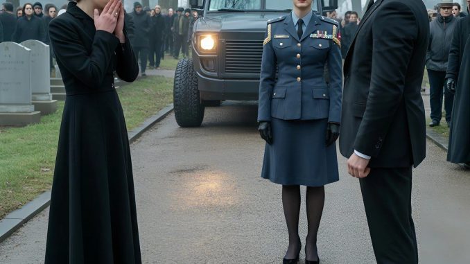 Elle portait une robe noire élégante et provocante, bien plus adaptée à une soirée mondaine qu’à un cimetière. Son parfum lourd flottait autour d’elle, étouffant.