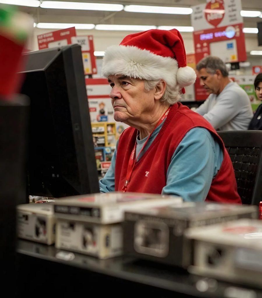 La veille de Noël, le supermarché était presque vide. Les néons clignotaient au-dessus des caisses et une musique festive passait faiblement, trop joyeuse pour l’ambiance fatiguée du lieu. Je revenais moi-même d’une longue journée de travail et je n’avais qu’une idée en tête : acheter du lait pour accompagner les biscuits que ma fille de sept ans, Léa, avait préparés pour le Père Noël. Je ne voulais pas briser la magie.