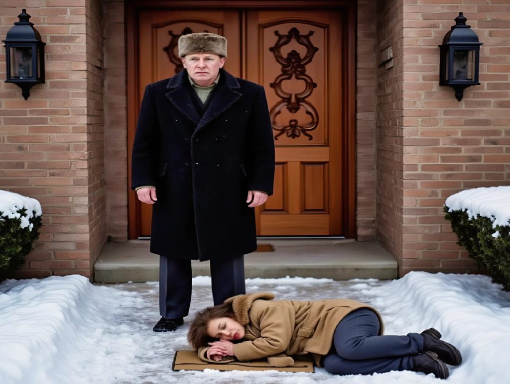 Allongée sur le paillasson sale, devant la porte, recroquevillée comme un animal abandonné.