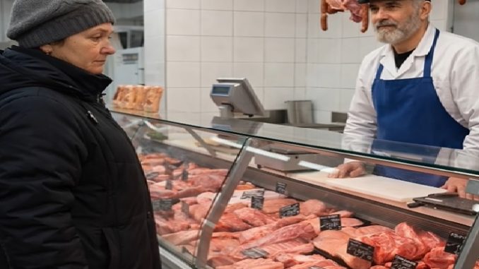 L’anziana donna compariva al mercato ogni mattina con una precisione impressionante. Alle nove in punto entrava nella macelleria, si avvicinava lentamente al banco e pronunciava sempre la stessa frase:
